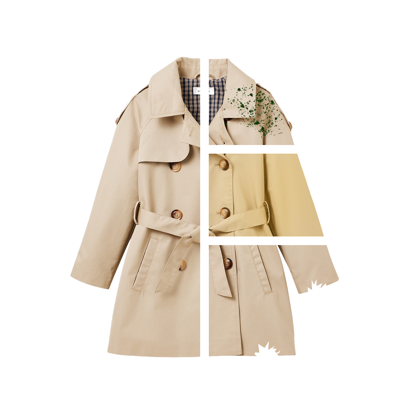 pour mieux voir les éventuels défauts (Tissus tâchés, délavés, distendus, boulochés, troués, décousus, recousus, usés).